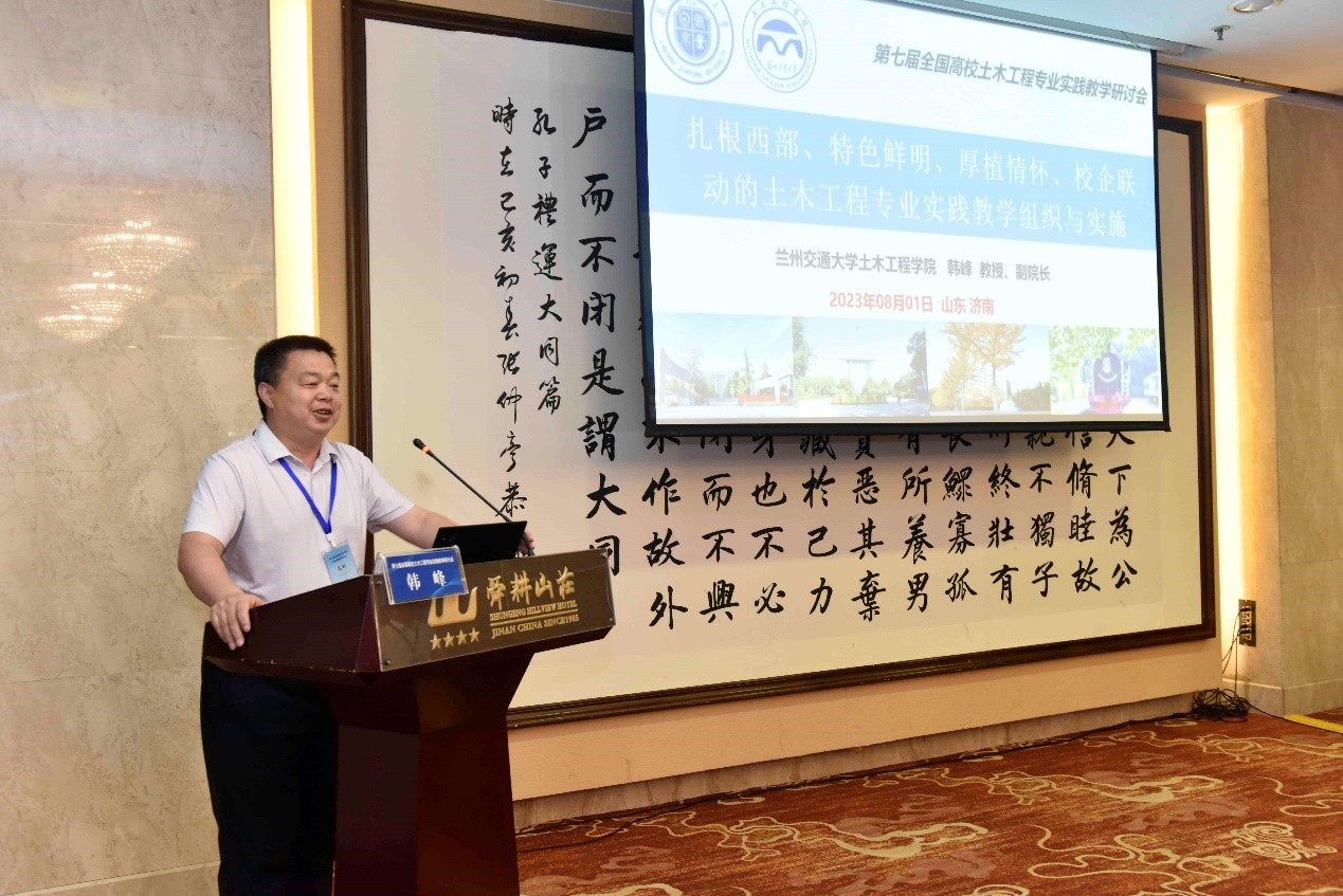 7月31日-8月2日,由教育部高等学校土木工程专业教学指导分委员会主办,山东建筑大学承办的第七届全国高校土木工程专业实践教学研讨会在济南顺利召开。来自全国145所土木工程知名高校的校长、院长、系主任及骨干教师代表参会,共商新时代我国土木工程专业实践教学创新发展大计。学校科技处处长、土木工程教学指导委员会委员蔺鹏臻教授,学院副院长韩峰教授、蒋代军副教授,铁道系主任王保成副教授一行4人参加此次教学研讨活动并做论坛报告。
