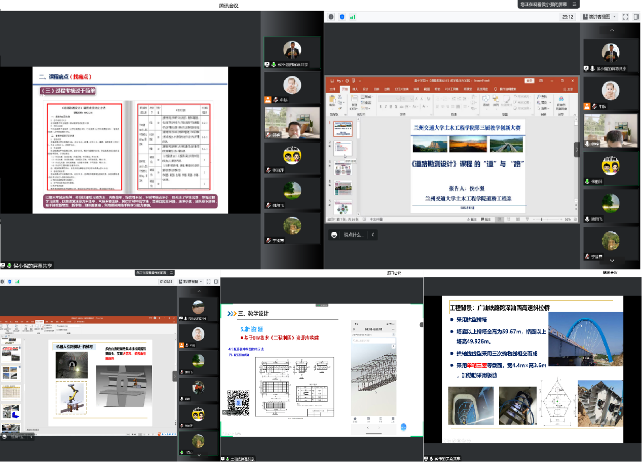 为深入推动学院教育教学改革,有效助力新工科建设,充分发挥教学创新大赛的示范引领作用,全面推进课程思政建设,根据学校《关于举办兰州交通大学第三届教学创新大赛的通知》精神,12月26日至27日,学院对18位教师提交的课堂教学实录视频和教学创新成果报告等材料的网络评审,选出各组别排名靠前的共计7位教师于12月28日下午以线上评审的方式进行教学创新设计汇报,有50余位教师全程观摩学习。