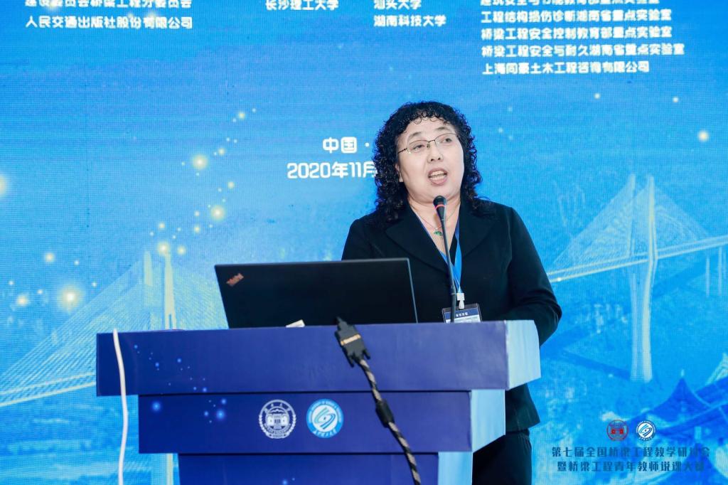 会议围绕新时代下桥梁工程人才培养、课程体系、教学方法、教材体系等进行深入的交流和探讨,宁贵霞教授做了题为“桥梁工程专业类课程教学课程思政模式的思考”的大会报告,得到了与会代表的充分肯定和广泛赞同。