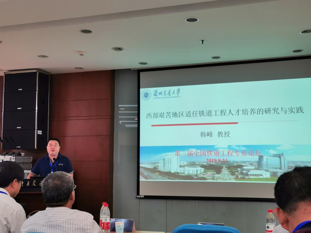 我院王旭副院长、韩峰副院长、铁道系主任黄志军等教师受邀参加此次论坛,韩峰副院长做了题为《西部艰苦地区适任铁道工程人才培养的研究与实践》的论坛报告,分享了我校铁道工程专业的办学理念、办学特色、主要举措及阶段成果,引起与会专家的热烈响应。