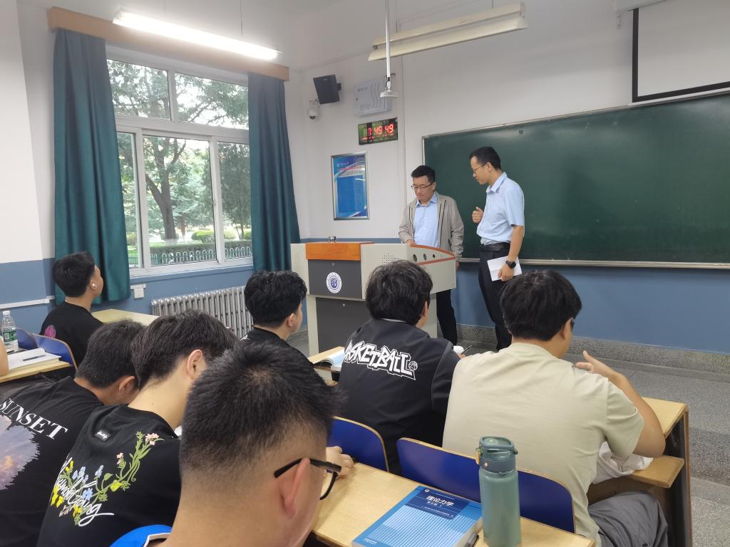 2025年8月25日新学期开学首日,土木工程学院领导班子成员深入教学一线,对全院23个授课班级开展“开学第一课”专项检查,以实际行动落实审核评估要求,筑牢新学期教学质量根基。此次专项检查聚焦教师教学准备完备度、课堂互动实效性及教学设备运行稳定性等方面,通过随堂听课、查阅教案、师生交流等方式,全面掌握新学期教学工作启动情况。