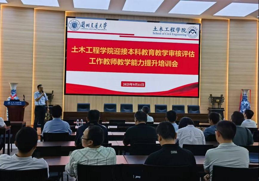 为全面提升教师教学水平,扎实推进新一轮本科教育教学审核评估迎评工作,土木工程学院于9月11日下午在3号实验楼5楼多功能厅举办教师教学能力提升专题培训会。会议由学院副院长张熙胤主持,全体专任教师参会。培训紧扣审核评估核心要求与教师能力建设主线,通过层次清晰的专题设计,系统覆盖教学规范、课程创新及思政融合等关键领域,为迎评工作夯实基础。