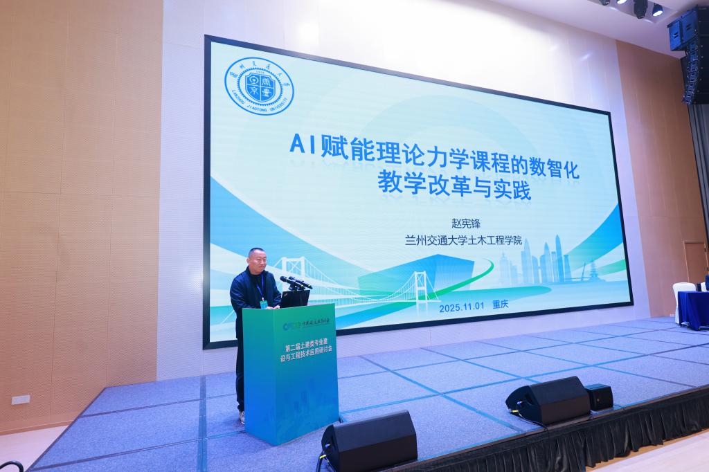 在大会报告环节,赵宪锋副教授以《AI赋能理论力学课程的数智化教学改革与实践》为题,详细介绍了如何将人工智能技术融入理论力学教学,推动课程向数字化、智能化转型的创新实践。欧尔峰副教授作了题为《岩土工程理论与应用课程思政体系建设》的报告,阐述了专业课程中深度融入思政教育元素的探索路径和成效。两位老师的报告兼具理论高度与实践价值,充分展现了我院在土建类专业教学改革中的探索成果,受到与会专家学者的广泛认可和好评。