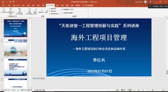 7月7日下午,由中国铁建股份有限公司沙特分公司李红兵副总工程师通过腾讯会议讲解了“海外工程项目管理”的讲座。讲座上李红兵老师根据自己的经历向同学们阐述了合同管理、国际项目管理等领域的工程专业知识。
