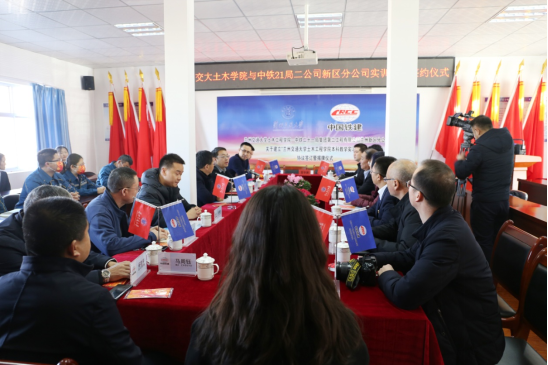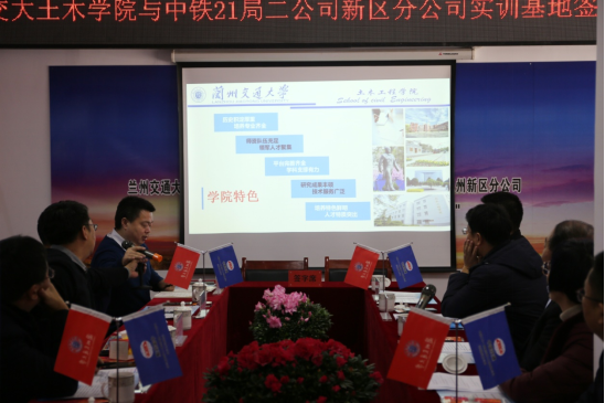 12月24日,学院教学实习基地协议签订暨揭牌仪式在中铁二十一局集团第二工程有限公司兰州新区分公司成功举行。兰州交通大学招生就业处副处长王昕,土木工程学院党委书记周涛,副院长韩峰、林梦凯,中铁二十一局集团公司人力资源部(党委干部部)部长郑志民,第二工程有限公司董事长、党委书记张发祥,党委副书记、工会主席王建宏出席了协议签订暨揭牌仪式。