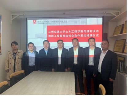 近日,为进一步加强实践教学环节,密切与生产单位的实际联系,充分发挥企业的在人才培养中的重要地位。学院副院长韩峰、梁庆国及土木系马丽娜副主任一行前往建材天水地质工程勘察院有限公司开展校企合作交流及签约仪式。