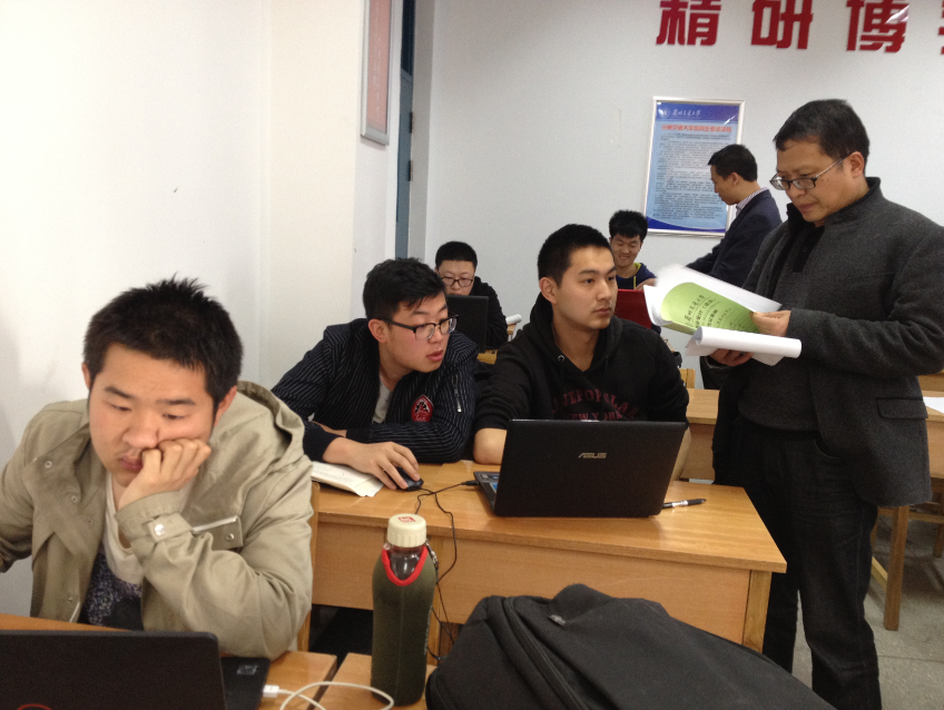 4月7日上午,土木工程学院全体系主任、教务办负责人在教学副院长蔺鹏臻教授的带领下,对2016届土木工程、工程管理、水利水电、工程力学专业学生的毕业设计进行督导检查。检查小组深入到毕业设计教室,从学生出勤、教师指导、进度完成情况等方面进行全面检查,并对设计小组和同学们提出的毕业设计开展过程中遇到的问题给予了帮助和指导。