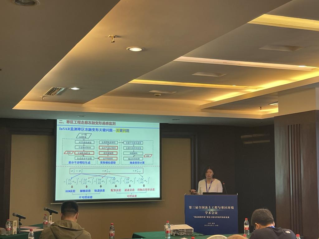 教师赵韬作了题为“寒区工程走廊冻融变形时空特征与融沉风险评估”的学术报告,利用微波遥感技术获取了青藏工程走廊大时空尺度冻融变形,探究了走廊冻融变形时空分布特征、演化规律及相关性能,揭示了冻融变形与影响因素间的互馈机制,从冻土工程学的角度建立了冻融风险评估预测模型,为升温背景下,工程走廊融沉风险的精准评估预测与防灾减灾提供理论支撑。