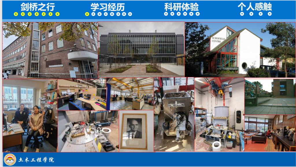 马丽娜副教授结合本人2021年8月-2022年9月在剑桥大学工程系为期一年的访学经历,从剑桥之行、学习经历、科研体会和个人感触4个方面,通过大量的照片与访学经历,介绍了世界名校剑桥大学工程系在学生培养、课程教学、研究生指导、科学研究等方面的典型案例与个人收获,拓展了我院师生的国际视野和学术素养。