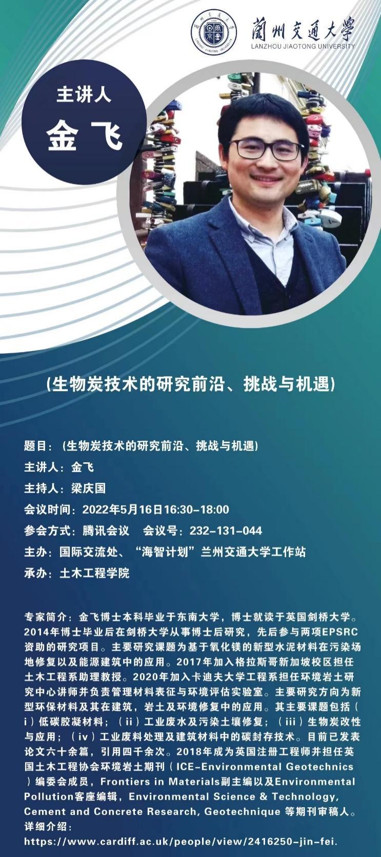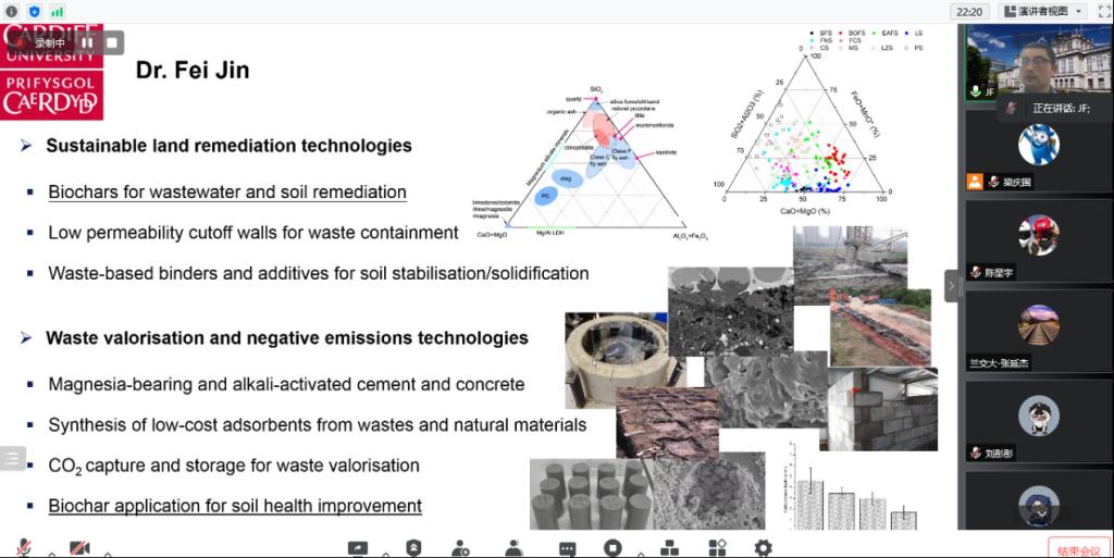 5月12日下午,应“海智计划”兰州交通大学工作站和土木工程学院联合邀请,英国卡迪夫大学金飞博士以线上视频会议方式作了题为“镁基水泥及其在污染土壤修复中的应用”的学术报告。此次讲座为我校“天佑海智云讲堂”系列活动,学院相关专业师生参加了此次线上学术报告会。