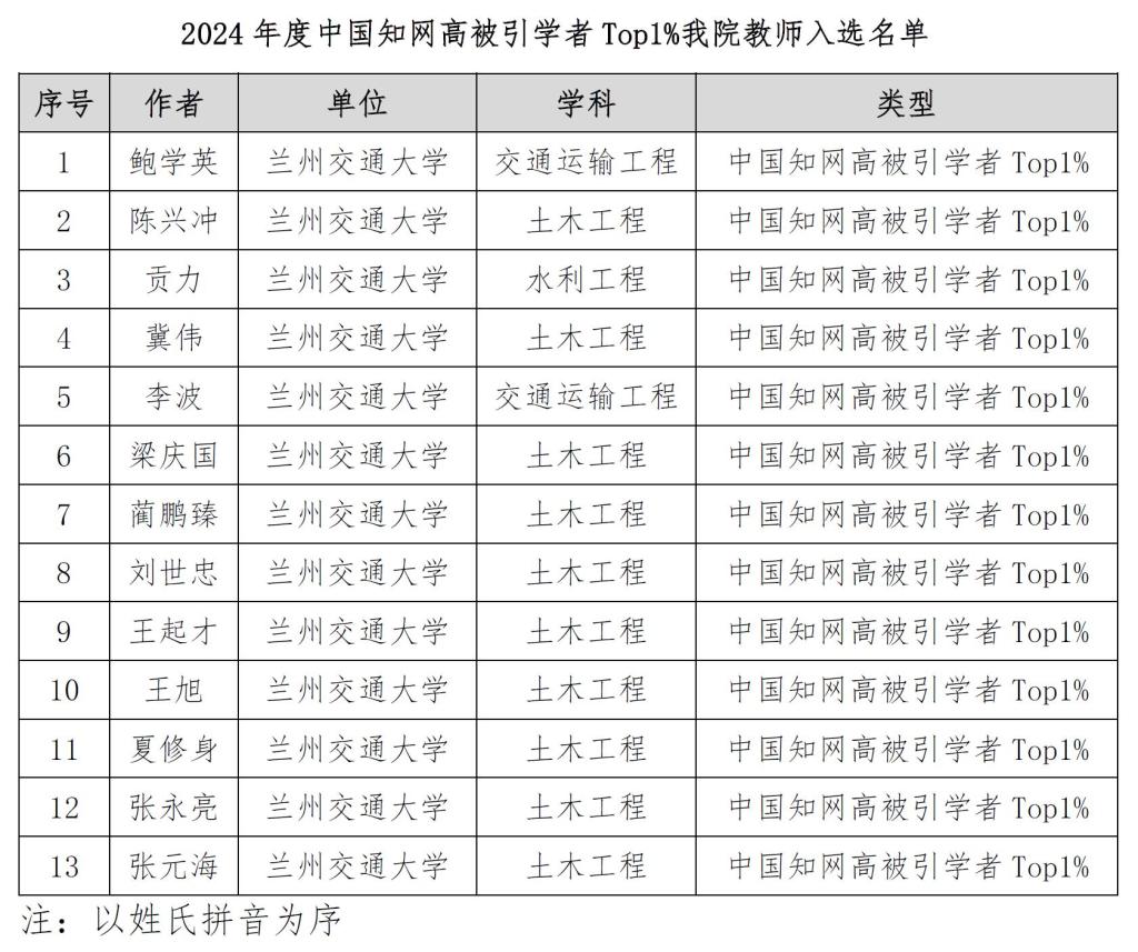 近日,中国知网中国科学文献计量评价研究中心基于中国知网收录的国内学术期刊论文和会议论文,2024年首次开展学者学术影响力客观评价,遴选了“2024中国知网高被引学者”名单,助力优秀成果的国内首发。经过定量数据统计、遴选方案评审、学科专家调研等前期筹备工作,我院13名学者入选2024年度中国知网高被引学者Top1%。