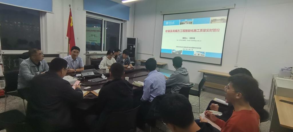 2023年6月2日晚8:30在土木工程学院503,天津大学刘东海教授应邀为我校水利工程专业的师生了学术报告。报告主题为《软基及高填方工程智能化施工质量实时管控》。会议由水利系主任陶虎老师主持,水利系相关教师及研究生参加了此次学术交流活动。