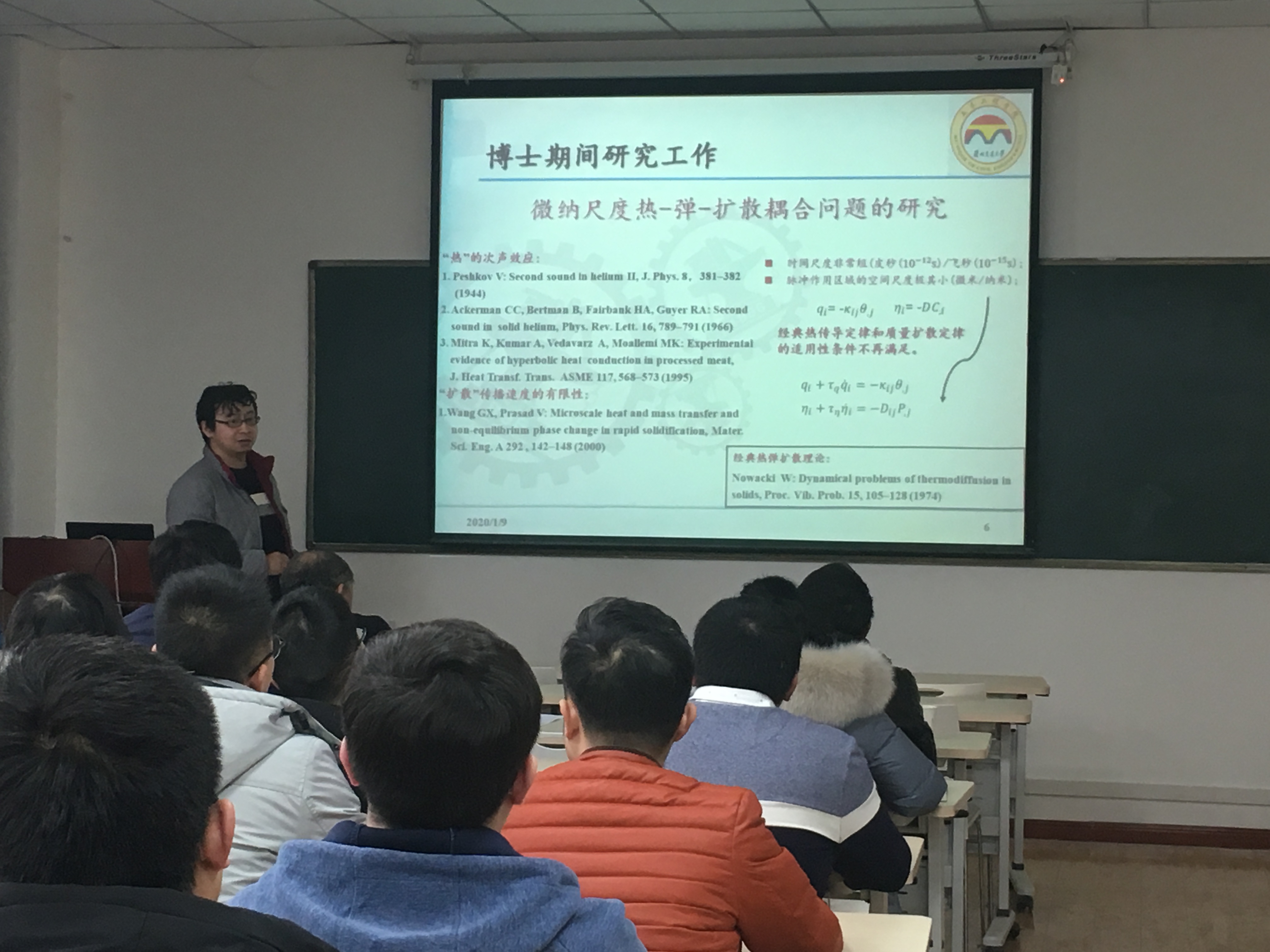 青年教师李晨琳博士为大家作了“科研项目申报及科技论文写作方法探讨”的专题报告,结合博士期间的研究成果,围绕微纳尺度热-弹-扩散耦合问题的研究,介绍了如何提出科学问题;展示了科研项目申报的层次及重点;着重讲述了科技论文的框架组成和各部分的重点、难点及投稿注意事项。