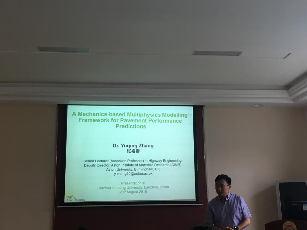 2019年8月23日,应土木工程学院邀请,英国阿斯顿大学材料科学研究院副院长张裕卿博导在土木工程学院303会议室做了题为“A Mechanics-based Multiphysics Modeling Framework Pavement Performance”学术报告。