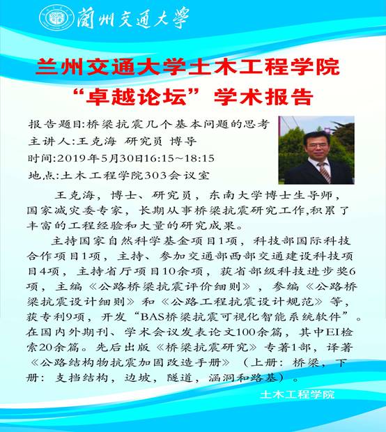 王克海,博士、研究员,东南大学博士生导师,国家减灾委专家,长期从事桥梁抗震研究工作,积累了丰富的工程经验和大量的研究成果。