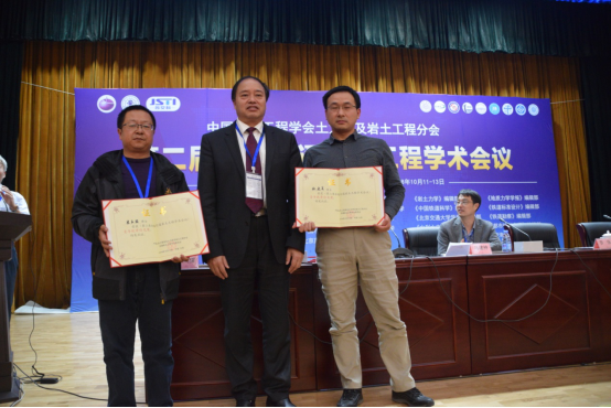 2018年10月11日-13日,第二届全国交通岩土工程学术会议在北京西郊宾馆隆重举行。在土木工程学院的大力支持下,我院副院长王旭教授、图书馆馆长严松宏教授、国家级实验教学示范中心主任梁庆国教授及蒋代军主任等一行9人参加了本次学术盛会。会议期间,王旭教授和梁庆国教授分别做了题为“人工制备湿陷性黄土工程性质与桩基负摩阻力计算方法研究”和“兰州轨道交通扰动场地黄土浸水试验研究”的主题报告,会场反响热烈,研究成果得到了国内同行的高度认可。梁庆国教授获得了本届学术会议“青年优秀论文奖”,王旭教授作为大会副主席为获奖者颁发证书。