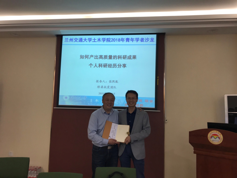 王旭教授首先为学院青年学者沙龙做了开场报告,从科学研究思维、研究方法和科研成果的凝练等方面分享了科学工作者成长之路。青年教师张熙胤博士为大家做了“如何产出高质量的科研成果—个人科研经历分享”的专题报告。石喜副教授做了题为“支状管网水力瞬变试验与数值模拟”的学术报告。张永亮教授就校级科研团队“桥梁结构抗震理论与工程应用研究”的成长与团队建设与大家进行了分享。刘廷滨副教授做了题为“水平嵌筋加固砖砌体墙抗震性能研究”的学术报告。报告人真切的语言、真挚的表达、幽默的话语引来阵阵掌声。