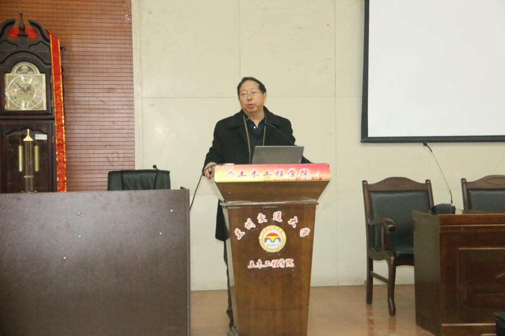2017年12月27日上午8:30,应土木工程学院邀请,大连理工大学唐春安教授来我院进行学术交流,开展了题为《基于BIM的土木工程结构稳定性分析-兼谈<实体结构力学>概念》的学术报告。报告由王旭副院长主持,学院众多师生参加并认真聆听了报告。