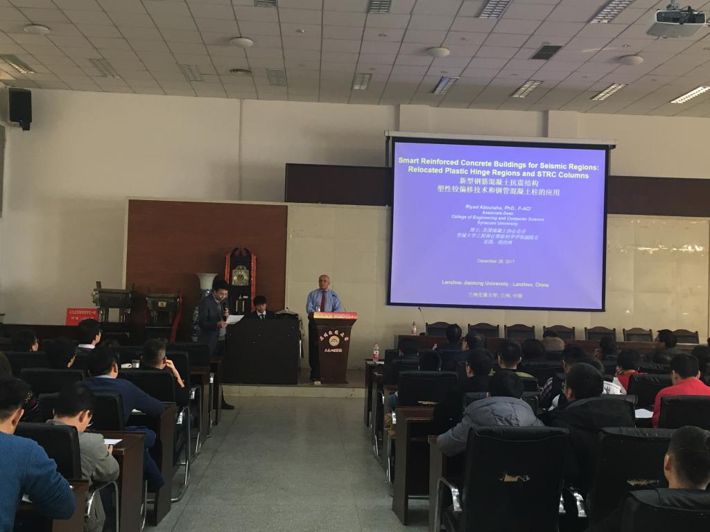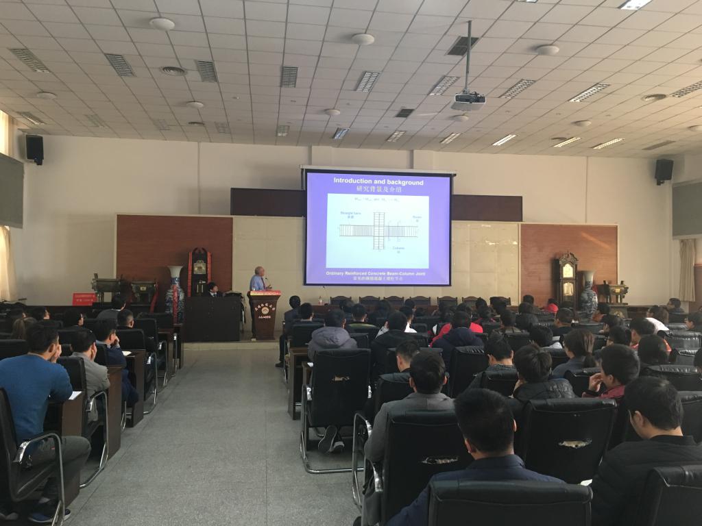 2017年12月27日下午15:00,应土木工程学院邀请,美国雪城大学Riyad S. Aboutaha教授来我院进行学术交流,开展了题为《新型钢筋混凝土抗震结构塑性铰偏移技术和钢管混凝土柱的应用》的报告。报告由虞庐松院长主持,陈兴冲副校长及学院众多师生出席并认真聆听了报告。