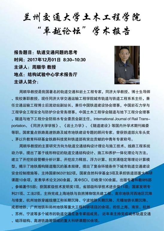 上一篇:【卓越论坛】同济大学大学周顺华教授应...