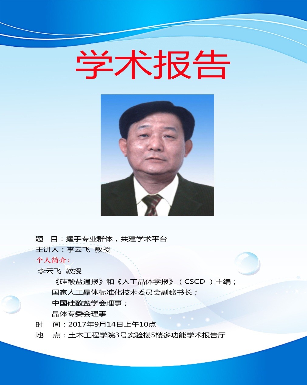 地 点:兰州交通大学土木工程学院3号实验楼5楼多功能学术报告厅