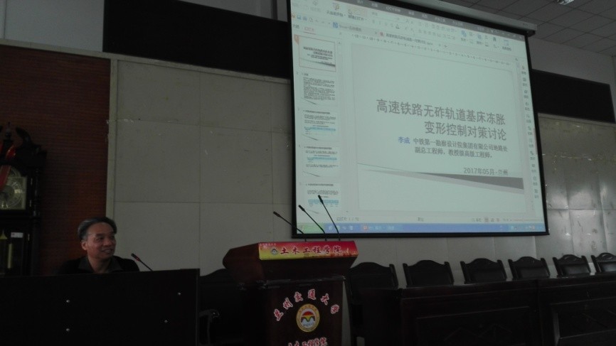 5月16日下午,土木工程学院岩土与地下工程系邀请中铁第一勘察设计院集团有限公司地路处副总工程师,教授级高工李成校友来院进行学术交流,并作主题为“高速铁路无砟轨道基床冻胀变形控制对策讨论”的学术报告。我院岩土与地下工程系、道铁系部分教师,众多研究生、本科生认真聆听了报告,讲座现场座无虚席、互动气氛热烈。