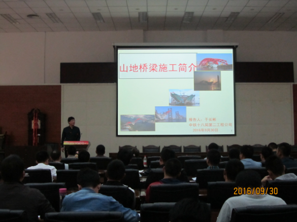 9月30日下午,应土木工程学院桥梁工程系邀请,中铁十八局集团第二工程有限公司于长彬高级工程师为学院2016年“卓越论坛”作题为“中国山地拱桥施工介绍”的学术报告。学院教师和研究生90多人聆听报告,桥梁工程系丁南宏教授主持报告会。