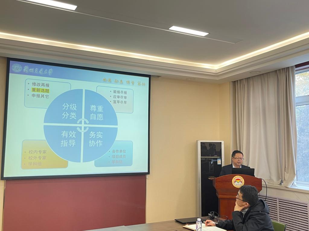 2024年11月21下午,闫浩文副校长莅临我院调研指导2025年国家自然科学基金申报工作。学院领导、各学科负责人、系(室)主任及青年教师等40余人参加了会议。会议由梁庆国副院长主持。