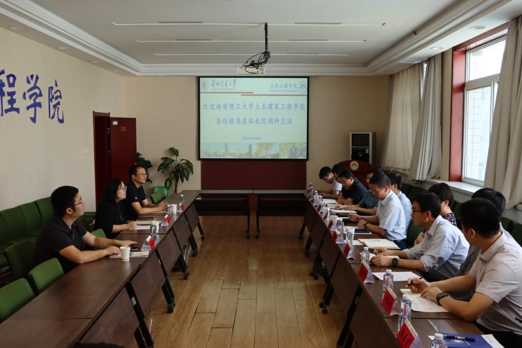 6月20日,西安理工大学土木建筑工程学院党委书记刘峰、院长赵钦、岩土工程研究所所长姚晓亮一行来我院调研交流。学院院长蔺鹏臻、副院长鲍学英、张煕胤、于本田及各科系(室)主任参加交流。座谈会由蔺鹏臻院长主持。