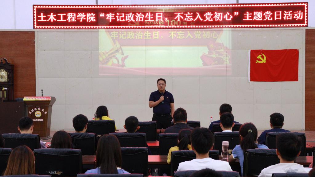 在建党100周年到来之际,为进一步规范党内政治生活,强化党员的身份意识和责任意识。土木工程学院党委积极创新载体和方式,6月20日下午,在三号实验楼五楼多功能厅举行了一场特别的“生日会”。学院党委书记周涛,党委副书记、副院长荀新文,学工办主任胡渊、党委组织员刘娇及师生党员200余人参加了活动。