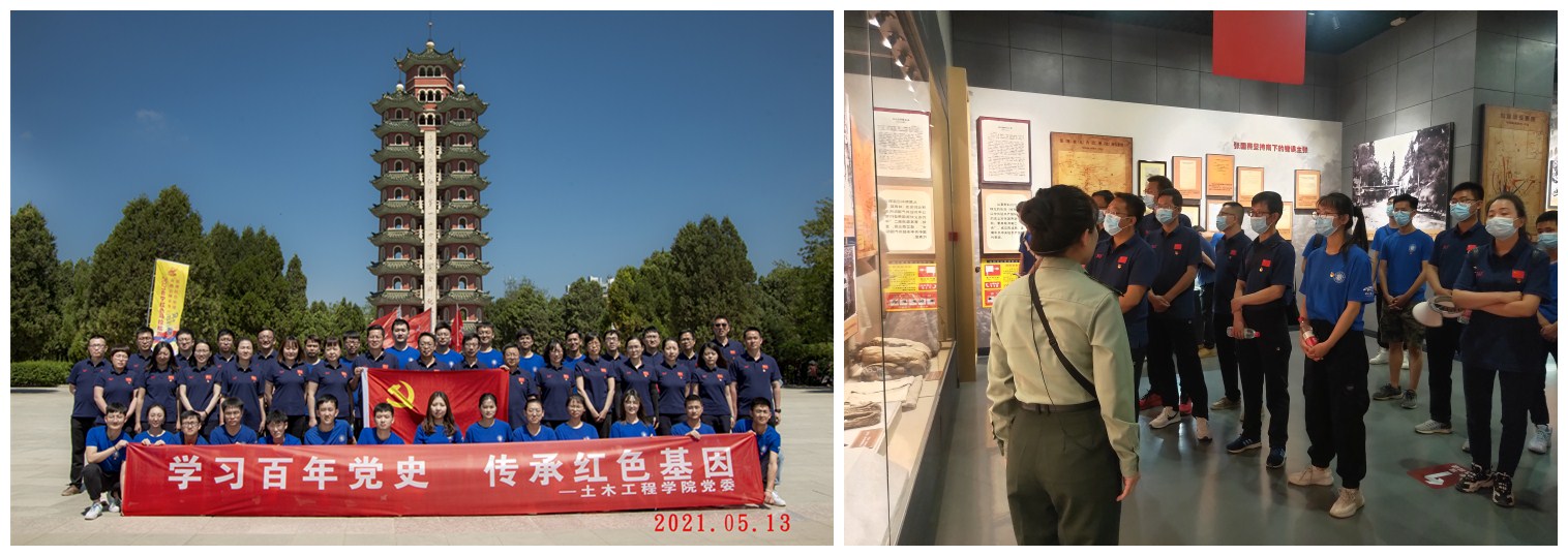 为了全面贯彻落实习近平总书记在党史学习教育动员大会上的重要讲话精神,持续深入学习习近平新时代中国特色社会主义思想,教育引导广大党员学党史、悟思想、办实事、开新局,确保党史学习教育走深走实。近期,土木工程学院党委组织开展“五个一”党史学习教育实践活动之参观一次红色教育基地活动,组织学院师生党员参观八路军驻兰办事处、兰州市战役纪念馆、兰州市烈士陵园、甘肃省博物馆红色厅、会宁长征胜利纪念馆、兰州战役窦家山战斗纪念广场,缅怀革命先辈,接受红色教育,传递红色基因,赓续精神血脉。