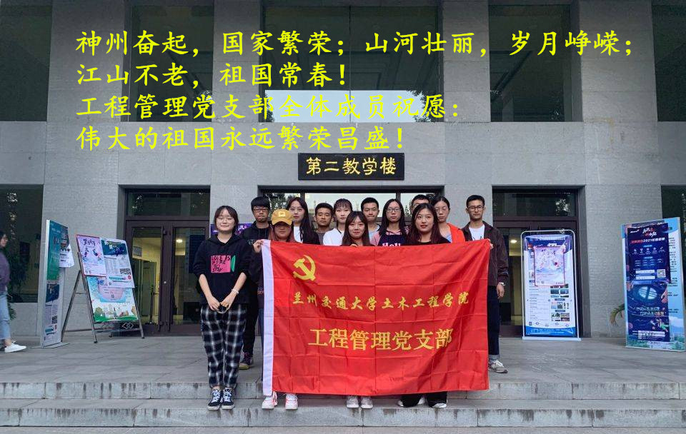 为了庆祝新中国成立71周年华诞,加强党员爱国教育,激发学生爱国热情,并充分考虑到疫情防控的要求。近期,土木学院各支部举行“为祖国庆生,为祖国喝彩”活动。祝福祖国的明天,天更蓝、山更绿、水更清,经济更繁荣、人民更幸福、国力更强盛。