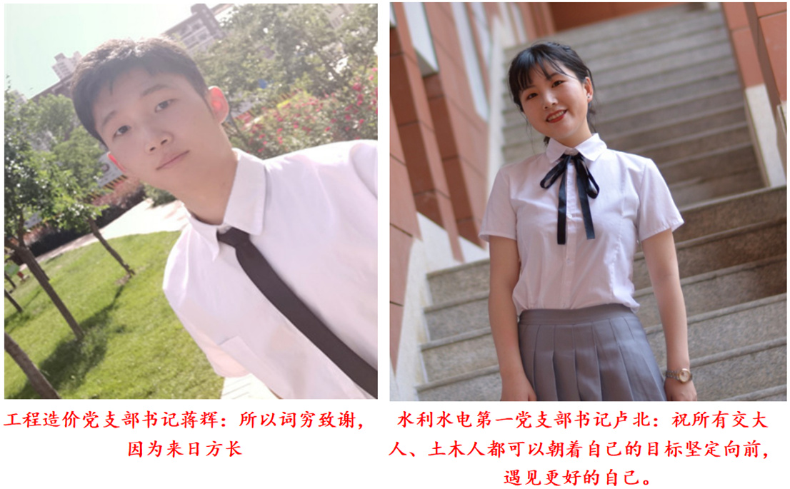 在这个特殊的毕业季,学院本届学生党员干部如期毕业。临别之际,他们有无限感慨,或是对往日校园生活的眷恋,或是对未来自己的憧憬,也有对下一届党员干部的嘱托,更有对母校深深的祝福。学院党委对他们的辛勤工作表示由衷的感谢,希望他们在新的工作岗位上发扬土木精神,坚定理想信念,不断进取,争做先锋。