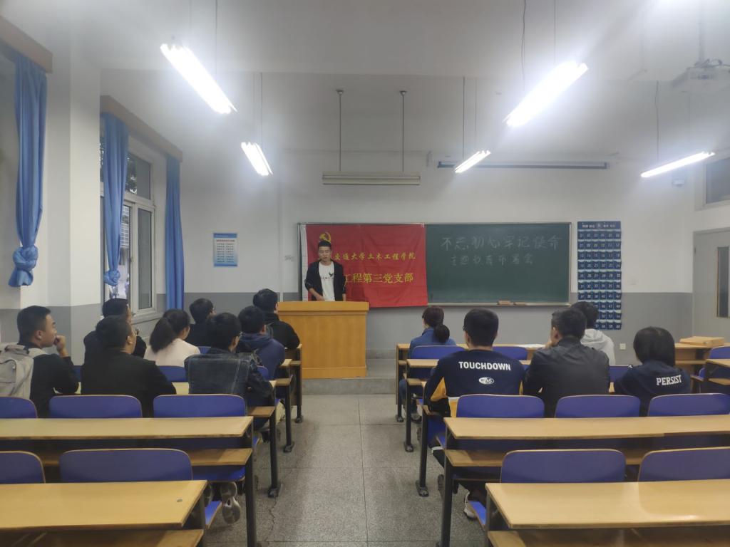 近期,学校各基层党组织学习传达“不忘初心、牢记使命”主题教育动员部署会议精神。土木工程学院及时召开党委会议,并于18日下午召开全体党员干部会议,传达“不忘初心、牢记使命”主题教育动员部署会议精神。