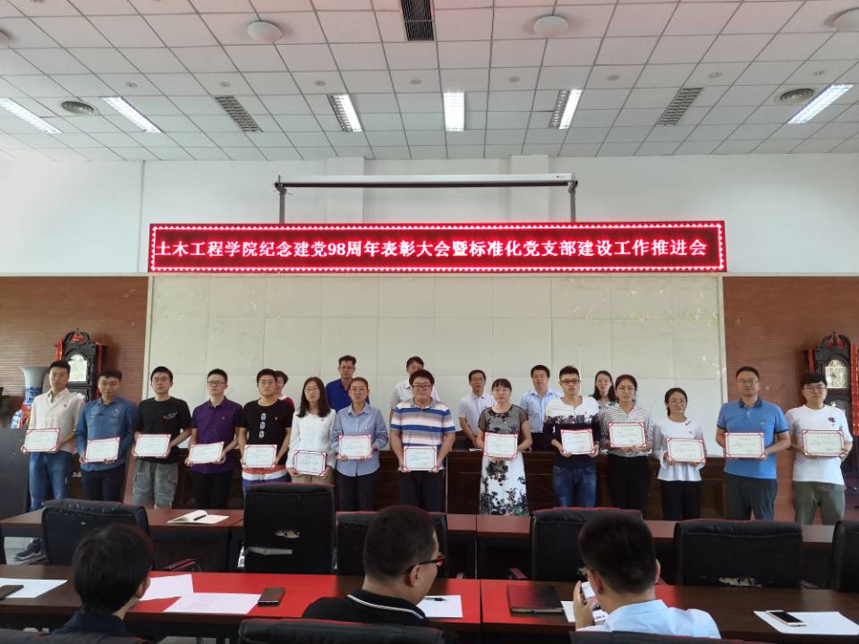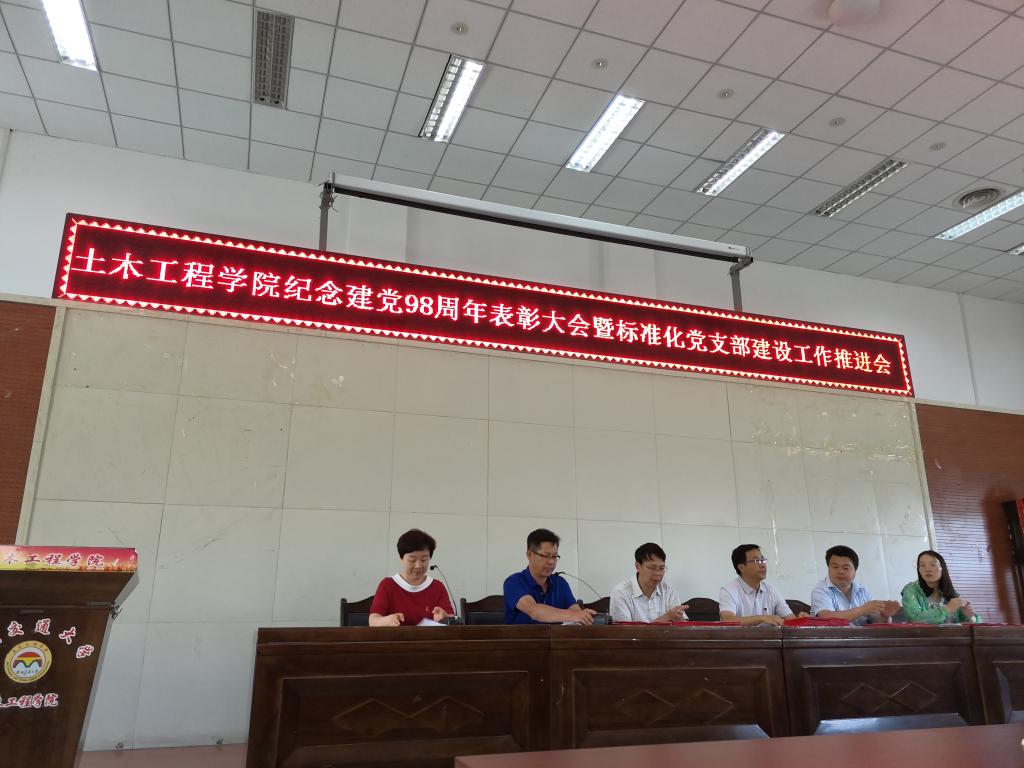 为纪念中国共产党成立98周年,弘扬正气、树立标杆,激励全学院各党支部及广大师生党员不忘初心、牢记使命。7月4日下午,土木学院党委在三号实验楼土木多功能厅召开纪念建党98周年表彰大会。同时,为进一步推进学院标准化党支部建设,借此表彰大会的机会,学院党委对标准化党支部建设工作进行了推进部署安排。参与此次会议的人员为全院所有党委委员,党支部书记,受表彰人员及新入党员,由鲍学英副院长主持此次会议。