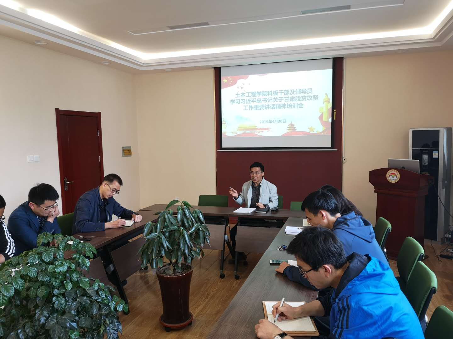 为认真落实甘肃省委把学习习近平总书记讲话精神作为领导干部“专业课”、全体党员干部“必修课”的要求,4月30日,学院召开了专题学习会议,对全体科级干部认真学习贯彻习近平总书记在参加十三届全国人大二次会议甘肃代表团审议时的重要讲话精神进行了集中培训。