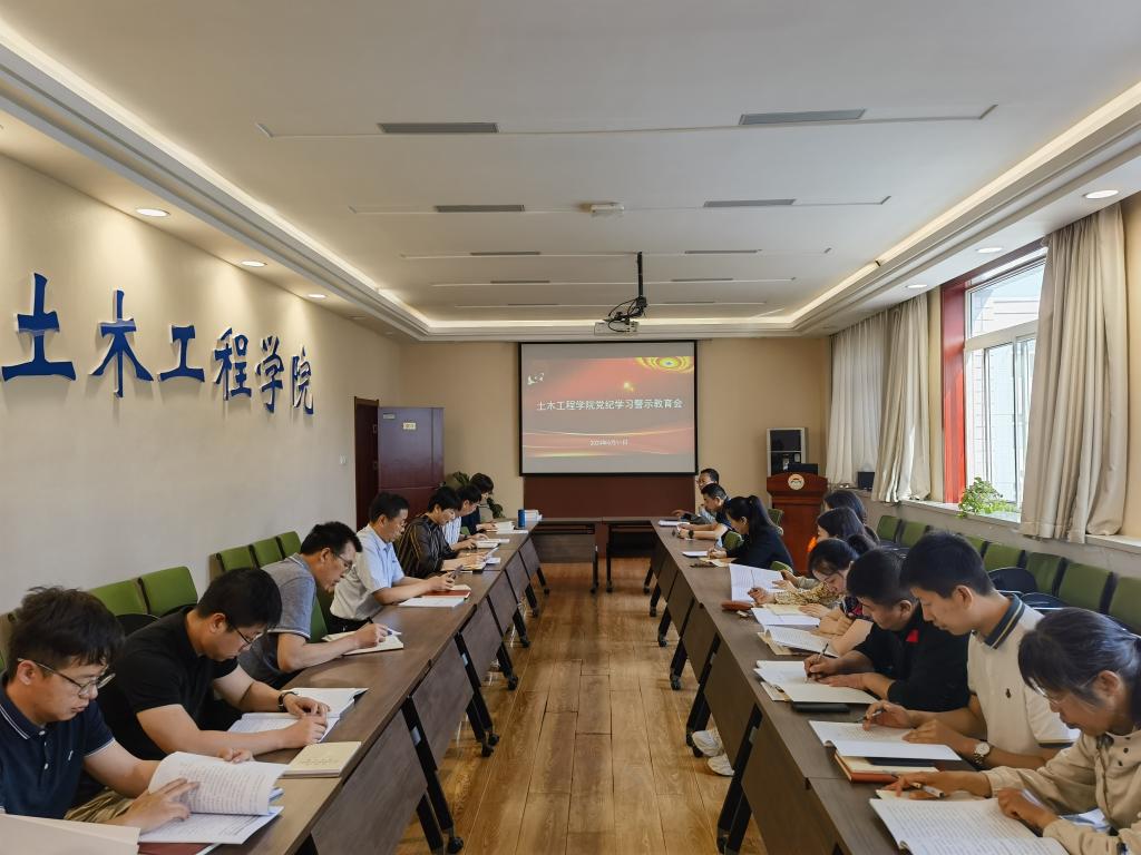 6月11日,土木工程学院在学院楼303室召开党纪学习教育警示教育会议,学院领导班子成员和各系室负责人参加。
