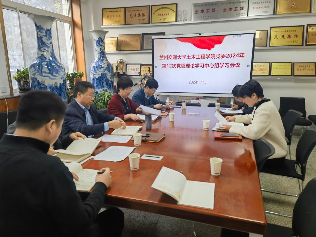 11月12日上午,土木工程学院2024年第十二次党委理论学习中心组学习会议在土木工程学院楼302室召开,专题学习习近平总书记视察甘肃重要讲话重要指示精神,党委书记王娜主持会议。