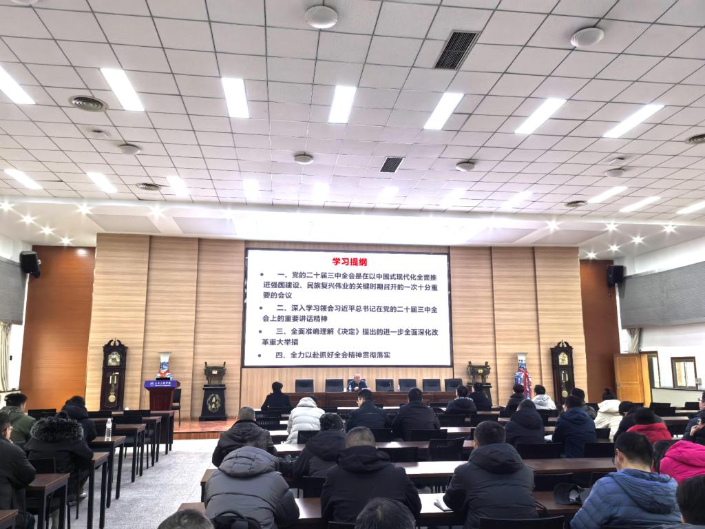 为深入学习贯彻党的二十届三中全会精神,12月18日下午,学院党委邀请马克思主义学院曹富雄教授作党的二十届三中全会精神专题辅导报告。学院教工党员和学生党员代表100余人参加,报告会由学院党委书记王娜主持。