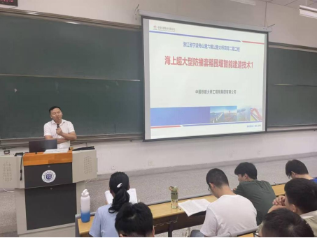中国铁建大桥工程局集团有限公司正高级工程师余绍宾以海上超大型防撞套箱围堰整体智能建造技术为题,结合浙江省宁波舟山港六横大桥等重大工程实例,系统介绍了智能施工装备、BIM技术协同、远程监控系统等在复杂海洋环境中的集成应用。他通过工程视频、三维模型和现场施工照片,生动展示了从构件预制、浮运吊装到精准定位的全流程技术细节,强调智能建造不仅是施工设备的技术升级,更是工程管理模式‘经验驱动’向‘数据驱动’的深刻变革。在交流环节,学生就海洋环境施工精度控制、跨部门技术协作难点等问题踊跃提问,余绍宾结合自身参与近100座大桥建设的经验一一解答。不少学生反馈:“这场讲座跳出课本框架,让我们对超大型桥梁工程的全流程管控与核心技术逻辑有了更立体、系统的认知,也更坚定了投身交通行业的职业志向。”