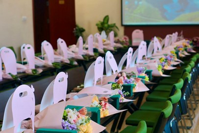 在花艺老师的指导下,女教职工们纷纷动手尝试。她们发挥自己的想象力和创造力,将各种花卉巧妙地搭配在一起,创作出一幅幅独具匠心的花艺作品。有的作品清新淡雅,宛如一幅水墨画;有的作品色彩斑斓,充满了生机与活力。每一件作品都凝聚着女教职工们的心血和智慧,展现出她们独特的艺术才华和审美情趣。