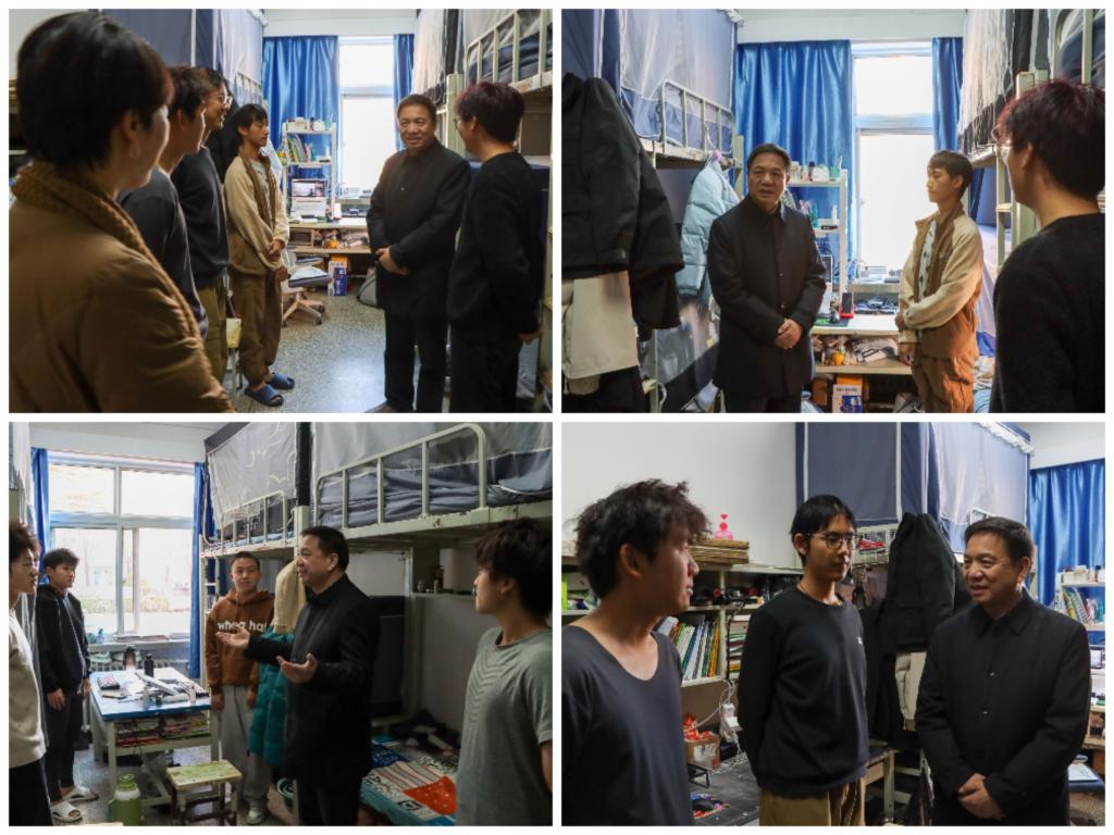 调研会后,朱廷珺在北苑四公寓开展“七进”之深入学生宿舍密切联系学生。在学生宿舍,他与同学们亲切交流,了解学生宿舍生活、用电安全、环境卫生、在校饮食、生活作息等情况,认真听取了同学们对学校教育教学、后勤服务保障等方面的建议和意见,对同学们在学习生活方面存在的疑惑予以现场解答,他指出,希望同学们珍惜宿舍情谊,发挥宿舍主阵地,让宿舍变“小家”,让同学变“亲人”。