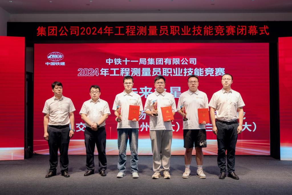经过两天的激烈角逐,竞赛裁判组从理论知识、外业观测、测量精度、测量速度等方面全程跟踪、严密把关、严格评判,我校代表队荣获中铁十一局2024年工程测量员职业技能竞赛“未来之星”荣誉称号。