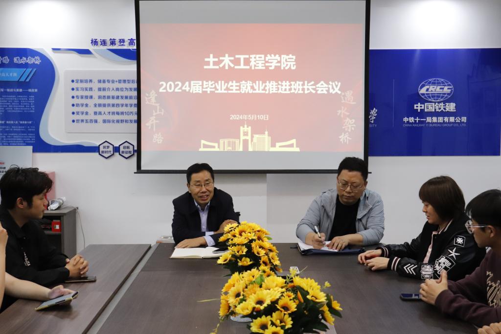 为深入贯彻落实学校关于2024届毕业生就业工作的决策部署,推进学院就业工作走深走实,在毕业生就业关键期、冲刺期,加力加快工作进程,百日冲刺攻坚力促我院毕业生顺利就业、尽早就业。5月9日下午,土木工程学院在学院313会议室组织召开2024届毕业生就业工作推进会,学院党委书记王娜、党委副书记、副院长林梦凯、学生工作办公室主任胡渊、2024届毕业班辅导员戴一帆、鲁冠亚及2024届毕业班班主任参加会议,会议由学院党委副书记、副院长林梦凯主持。