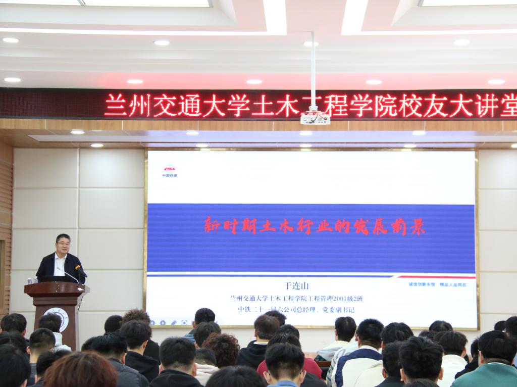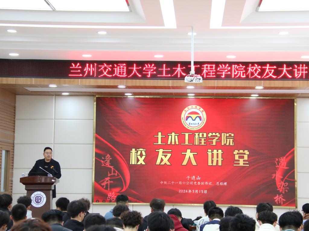 为学习优秀榜样力量,进一步做好土木学子的职业生涯教育指导,引导同学们认识行业,向行业朋辈榜样看齐,树立正确的就业观,积极投身土木行业建功立业,3月15日下午3点,土木工程学院邀请我院工程管理2001级校友、中铁二十一局六公司党委副书记、总经理于连山在学校二教报告厅开展校友朋辈大讲堂,学院各年级学生及团学干部近300余人参加会议,会议由学工办主任胡渊主持。