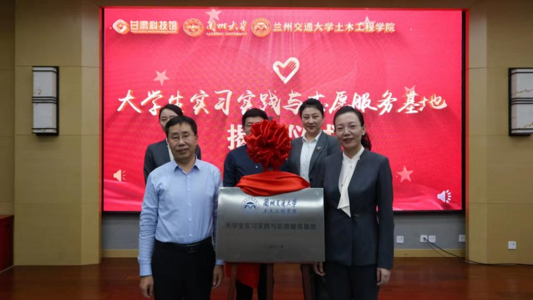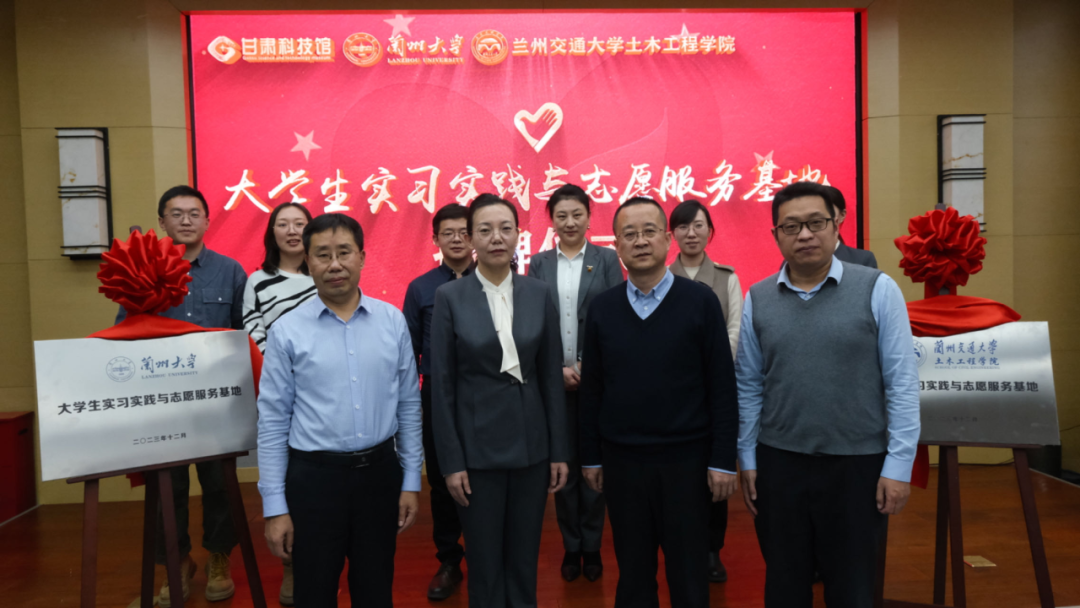 科技强国促振兴,志愿服务助未来。为深入贯彻习近平总书记关于科技强国的重要指示,注重科技文化关怀,强化志愿服务理念,提升志愿服务质量,促进科学知识普及,加强土木工程学院志愿服务品牌化、平台化建设。12月27日,兰州交通大学土木工程学院与甘肃科技馆共建大学生实习实践志愿服务基地签约及揭牌仪式在甘肃科技馆举行,甘肃科技馆副馆长、省青少年科技活动中心副主任康春燕、甘肃科技馆办公室主任余芳芳、展教部副部长王璐、兰州交通大学土木工程学院党委副书记、副院长林梦凯、土木工程学院团委负责人、兰州大学相关部门领导出席揭牌仪式,土木工程学院青年志愿者参加活动。