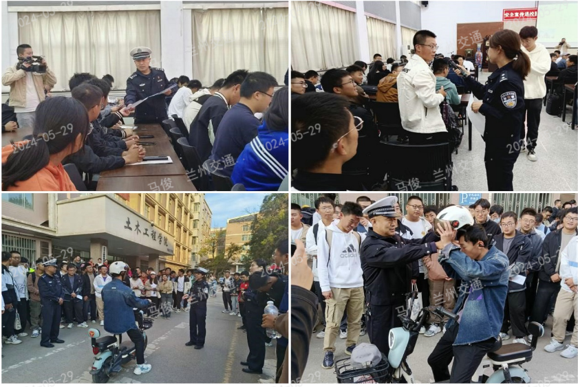 在现场演示活动中,警官对同学们讲解了电动车正确骑行姿势,挂牌的重要性以及兰州市电动车挂牌政策,演示头盔的正确佩戴方法。通过同学们现场骑行演示,纠正同学们在骑行过程中存在的问题。