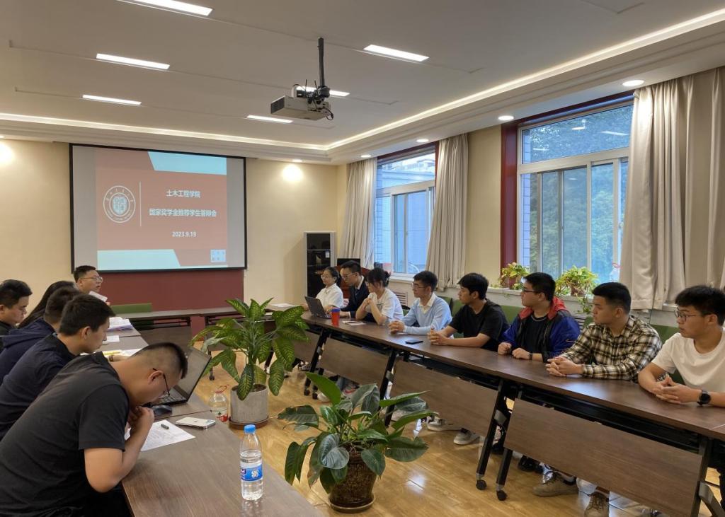 为进一步规范国家奖学金评审工作,培养学生奋斗精神和感恩意识,激励青年大学生勤奋学习、努力进取,促进我院优良学风建设。近日,土木工程学院于学院303会议室举行2023--2024学年国家奖学金评选答辩会。学院学生工作办公室主任胡渊、各年级辅导员鲁冠亚、郭海东、辛国伟、牌立芳、祁文燕、戴一帆担任评委,国家奖学金申请者参加答辩,各年级部分学生代表参加了会议。