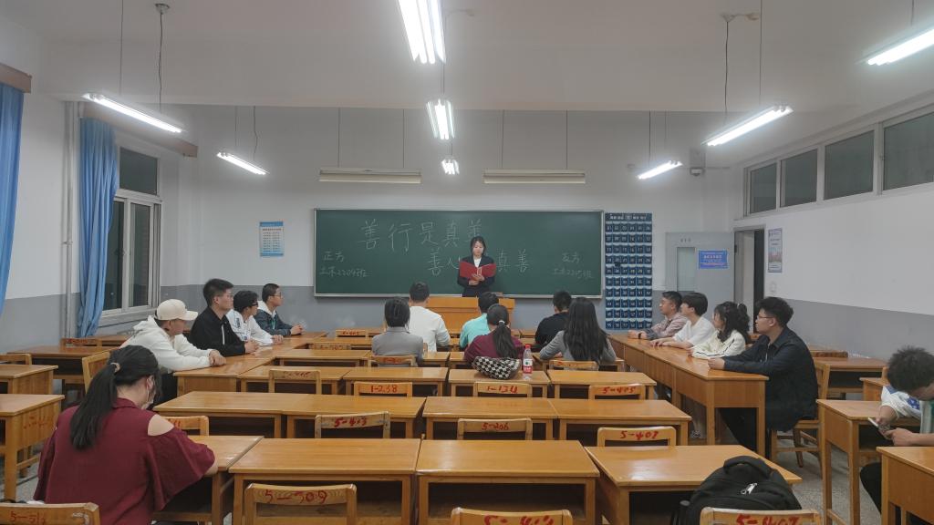 辩论赛根据大学生活、时事热点设置赛题,严格制定规则与形式。各班级代表队围绕主题分别进行破题立论,积极发言,多元角度进行提问与反驳,充分论证己方观点,通过陈词、攻辩、自由辩论、总结等环节进行激烈论辩、据理力争。其中,自由辩论环节更是精彩纷呈,辩手们各展风采,面对正方辩手的引经据典,旁征博引,以灵活的思维和缜密的逻辑推理进行了反击,将赛场上的气氛推至高潮,双方辩手激烈交锋,侃侃而谈。