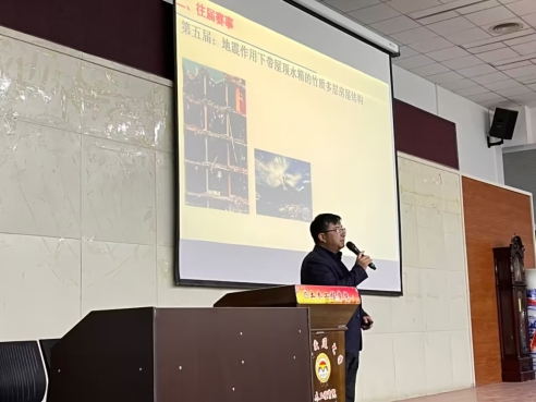 会议伊始,播放了在太原理工大学刚刚结束的第十五届全国大学生结构设计竞赛的花絮集锦,到场老师和学生全神贯注地观看了视频,同学们的参赛激情也跟随着视频播放愈加热烈。